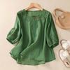 Nová literární a retro vyšívaná košile Letní poloviční rukáv Tenká volná a všestranná pulovrová halenka