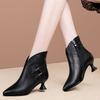 2024 autumn and winter new soft leather short boots women's pointed small thick heel boots children's medium heel short boots fashion high-end