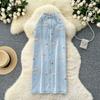 Léto Podzim Dámská Ležérní Výšivka Pes Vysoký Pas Dlouhá Midi Tužková Džínová Sukně