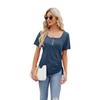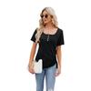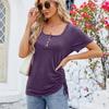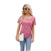 Letní dámské tričko Knoflíček U Neck Volný Stahovací Top Krátký rukáv