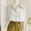 Dámská pruhovaná košile s dlouhým rukávem jarní a podzimní profesionální bílá halenka francouzský jemný oddíl topů
