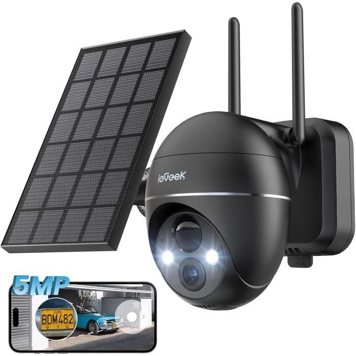 Caméra de surveillance - iegeek - 5mp - vision nocturne couleur - étanchéité ip65 - sans fil solaire