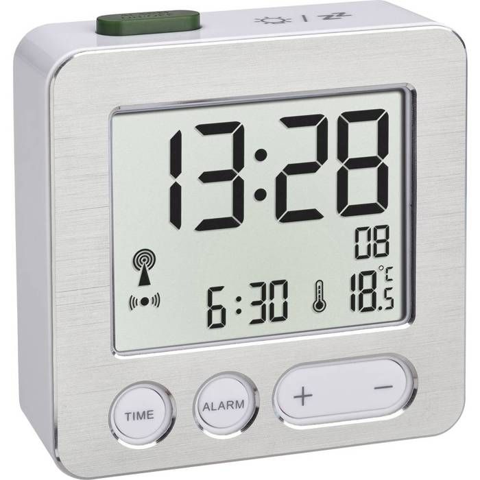Tfa dostmann 60.2545.54 radiopiloté(e) réveil argent, aluminium (brossé) heures de réveil 1