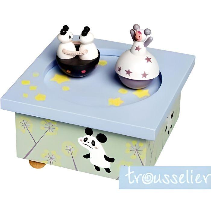 Boîte à musique en bois panda trousselier - principe d'aimants - 11.5x11.5cm