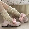 Silk Round Toe Women Mary Janes Shoes Pums Low Heels Pumps Wedding Dress Shoes Bow-knot Cute Sweet Women Shoes