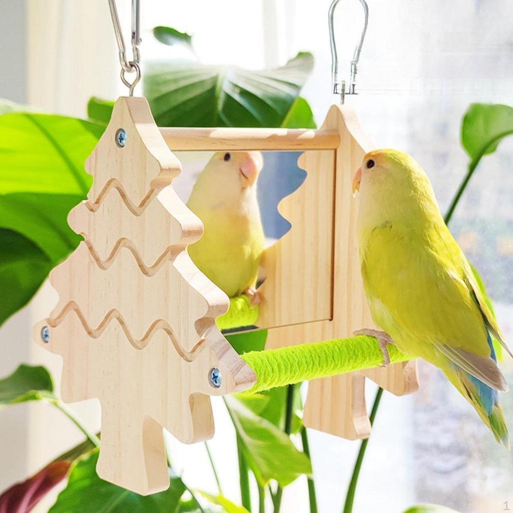 - 【Quality Materials】: Made from solid wood and mirror materials, this double sided mirror perch toy for parrot is with fine workmanship, sturdy and lightweight, ensuring long term use