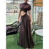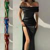Evropské a americké sexy jednobarevné síťované šaty s jedním rukávem a odhaleným pasem