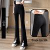 High-Waist Black Flared Pants for Women - Spring/Fall Slimming, Plus Size, Lightweight Front Slit Design