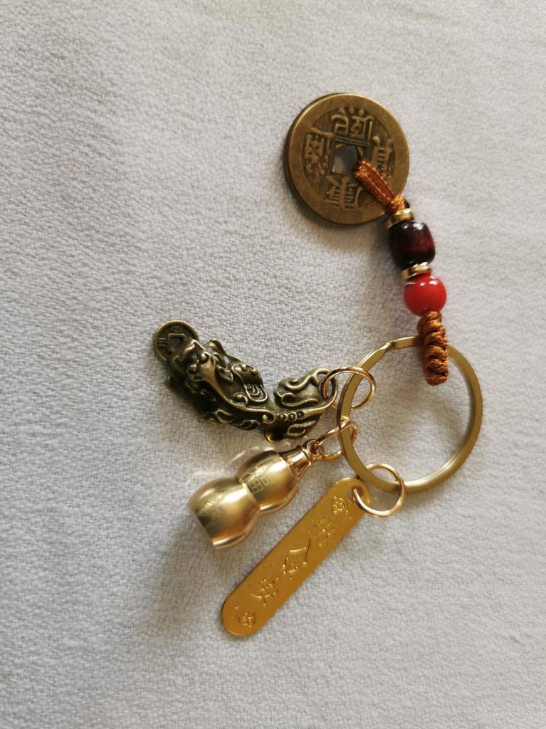 Přívěsek na klíče z čisté mosazi s tykví zvěrokruhu Pixiu a přívěskem s mincí pěti císařů