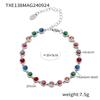 Bohemian Zirkonový Šperkovací Set: Barevné korálky, Kulatý náhrdelník a náramek, Nerezová ocel s PVD povrchovou úpravou 18K zlatem.