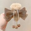 Podzimní/Zimní Velká Perlová Střapcová Mašle Spona do Vlasů s Plyšovým Žraločím Designem