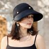 Women's Wide Brim Sun Hat, UPF UV Protection Outdoor Fishing Cap, Solid Color Bucket Hat with Adjustable Drawstring, Foldable Ponytail Beach Visor
