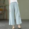Vintage-Inspired Embroidered Wide Leg Pants for Women - High Waist, Loose Fit, Light Blue Floral Design,Casual Wear Pants Floral Embroidered Trousers