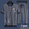 Pánská ležérní sportovní souprava z ledového hedvábí - Volný střih, trendy top s krátkým rukávem a zkrácené kalhoty, letní dvoudílný set.