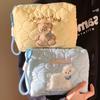 Blue Striped Bear Cosmetic Bag: Large-Capacity, Cute, Quilted, Portable Toiletry Storage for Girls