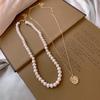 Módní francouzský dvouvrstvý náhrdelník ze sladkovodních perel – jednoduchý, nepravidelný řetízek z klíční kosti pro ženy