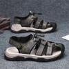 Leather Men'S Beach Shoes Fashionable And Comfortable Elastic Band Outdoor Sports Casual Shoes Breathable Hole Sandals