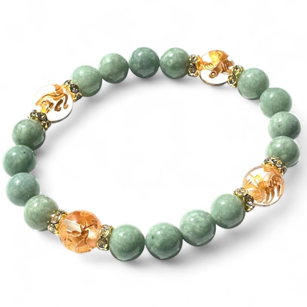 ✳️[Velikost kamene] Jadeit 8 mm Křišťál se zlatou rytinou Čtyř božských zvířat 10 mm