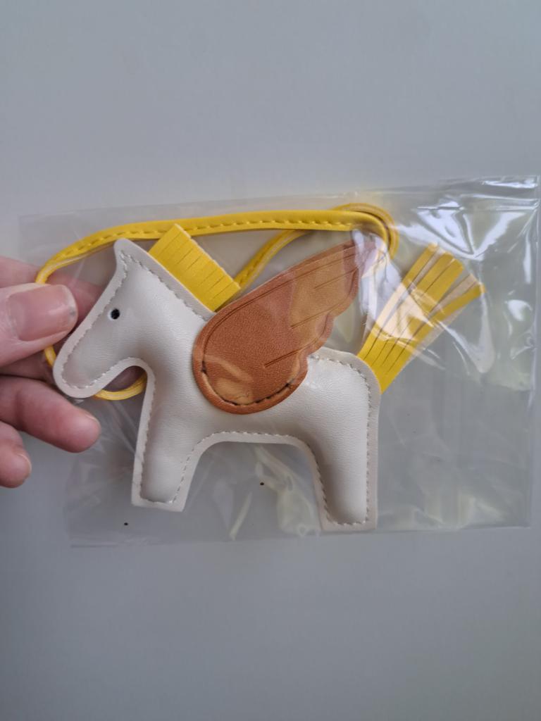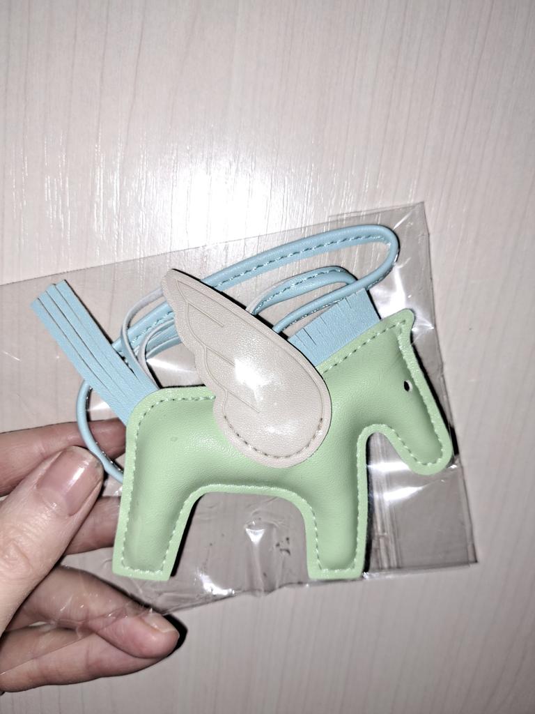 Kreslená klíčenka poník Pegasus: Roztomilý střapec a kožený přívěsek v kontrastní barvě