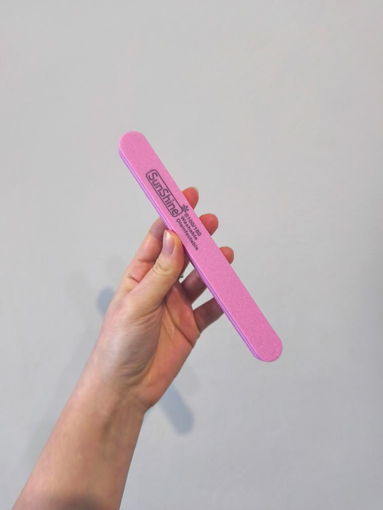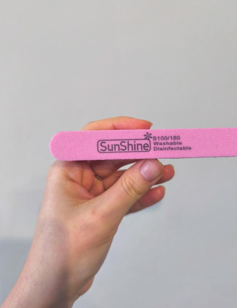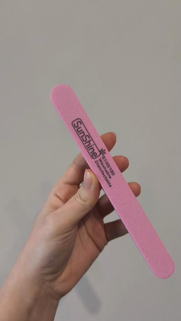 💅 Pilník SunShine S100/180 Tento růžový pilník je základní věc, která by měla být v každé kosmetické taštičce. Proto je dobrý: 🔸Oboustranná zrnitost: * Strana 100 grit je poměrně hrubá, skvěle se hodí pro zkracování délky a tvarování umělých nehtů (gel, akryl). 🔸Strana 180 grit — měkčí, ideální pro korekci přírodních nehtů. 🔸Praktičnost: Je na ní uvedeno, že je Washable (omyvatelná) a Disinfectable (dezinfikovatelná). To je obrovské plus pro hygienu — lze ji po použití umýt vodou s mýdlem. 🔸Tvar: Klasický rovný tvar je vhodný pro vytvoření ostrého „čtverce“ nebo „oválu“.