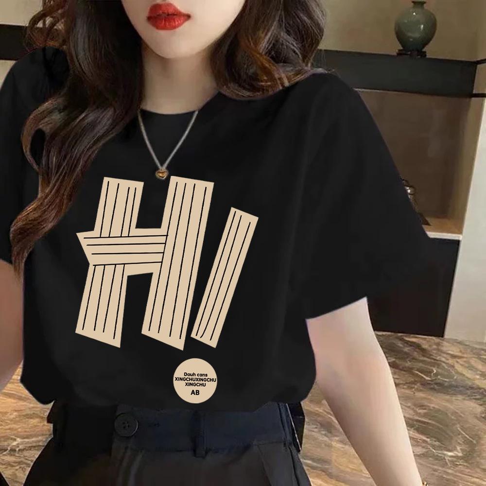 Cotton Front Shoulder Black T-shirt for Women In Women's Short-sleeved Summer New Large-size Base Shirt Underwear To Make Them Look Slim T-shirt Top