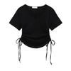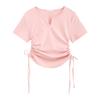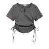Solid Color Short Slim V-neck Short-sleeved T-shirt Women's New Korean Style Design Niche Shoulder Top