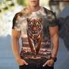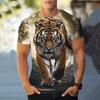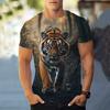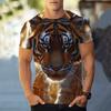 Módní pánské jednobarevné pánské tričko s krátkým rukávem s 3D potiskem tygra pro domácí nošení, s žlutým pozadím
