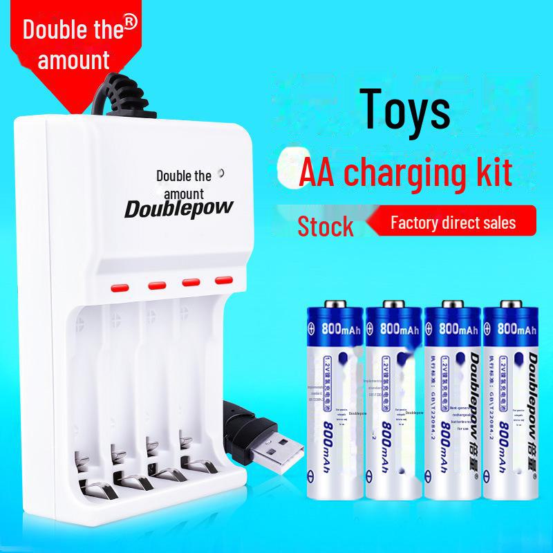 Set of 5 Double AA 1.2V 1200mAh Rechargeable Batteries with Charger (USB)