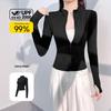 Juyitang Women's Slim-Fit Striped Yoga Jacket – Long Sleeve, Elastic, Ribbed, and Lightweight