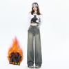 Experience ultimate comfort and style with these high-waisted plush wide-leg jeans, perfect for the fall and winter seasons. Crafted from premium denim, they offer enhanced warmth and durability, ensuring you stay cozy even on the chilliest days. The high waistline design accentuates your silhouette, while the spacious wide-leg cut allows for comfortable movement. Functional pockets add a practical touch, making these jeans an ideal blend of fashion and functionality for your seasonal wardrobe.