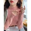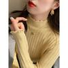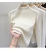 Women's White Half Turtleneck Knitted Sweater with Wheat and Wood Ear Detailing - Perfect for Spring, Autumn, and Winter Layers