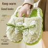 Dámské útulné plyšové bavlněné pantofle s mašlí - Protiskluzové, teplé, roztomilý design pro podzim/zimu 2024