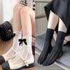 Dámské letní krajkové ponožky s mašlí - Vertikální vzor, síťované, krátké ke lýtku