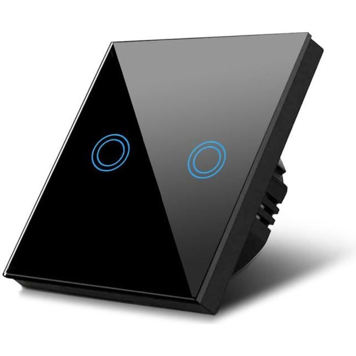 Interrupteur d'éclairage - led - verre noir - 2 boutons - étanche - design moderne