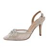 Liyke Fashion White Pearl Bowknot Women Pumps Sexy Mesh Pointed Toe Rhinestone Heels Party Prom Shoes Female Slingback Sandals