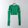 Dynamická dívka Slim Sexy Tričko s dlouhým rukávem Dámský pulovr s kulatým výstřihem Rukávy Otevřený Vysoký pas Krátký top