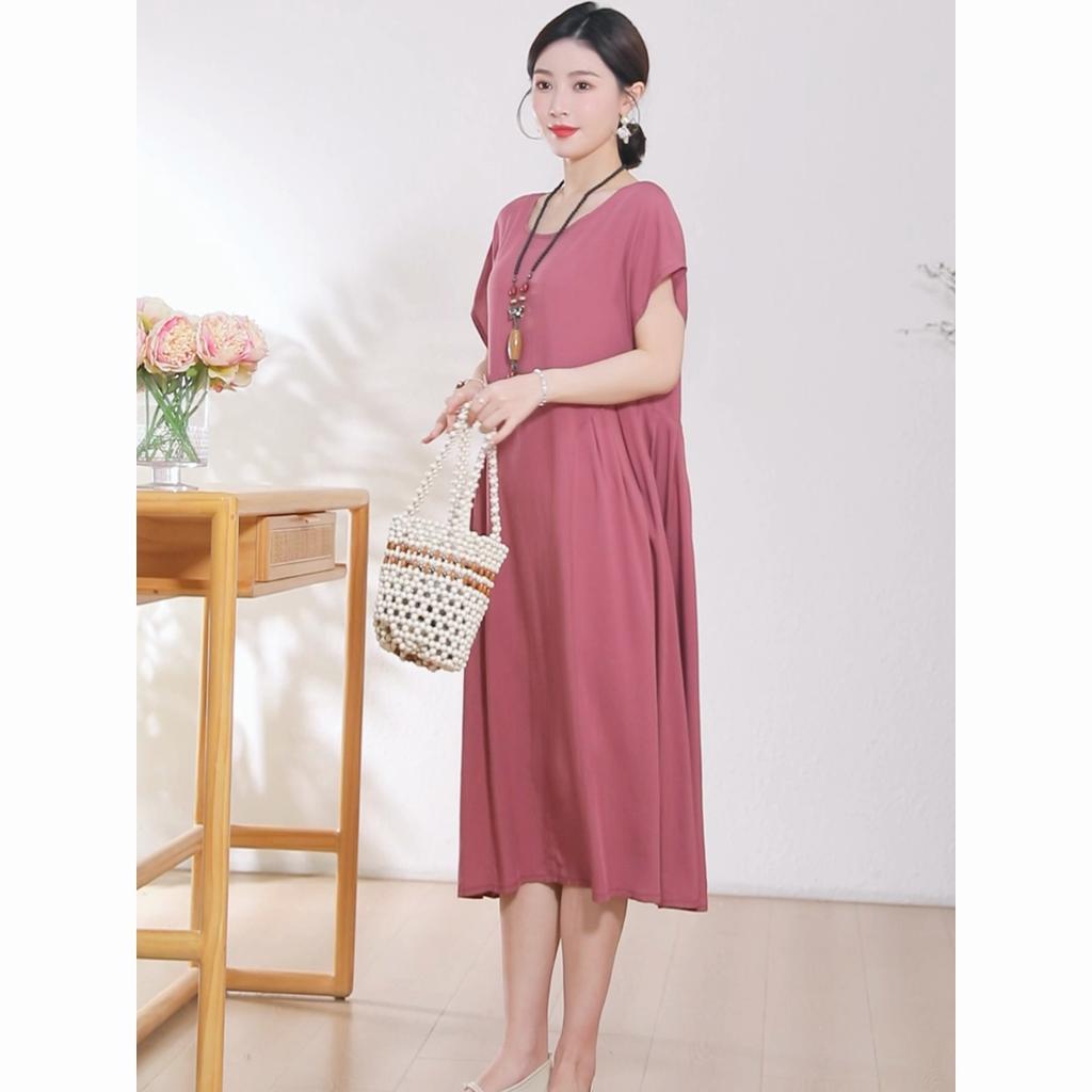 Elegantní dámské letní šaty velké velikosti Vintage oblečení Jednobarevné Krátký rukáv Volné Dlouhé šaty