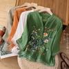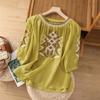 Dámské bavlněné lněné tričko velké velikosti, volné, ležérní, s výšivkou, pro volný čas, jednořadé, s krátkým rukávem