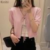Dámské letní topy s krátkým rukávem, bílé tričko, kardiganová bunda, krátký výstřih do V, pletenina, ležérní letní nezbytnost, pohodlí a styl, slim fit, pulovry, trička