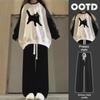 Dámský jarní raglánový svetr a volné kalhoty s širokými nohavicemi ve stylu Campus