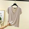 Letní jednobarevné základní tričko s U výstřihem pro ženy, krátký rukáv, volný střih, modalové tričko