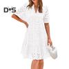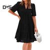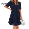 Elegantní Design: Tyto dámské šaty, vyrobené z vysoce kvalitního polyesterového vlákna, vyzařují eleganci díky volnému střihu a krajkovému designu s výstřihem do V, což je ideální pro sofistikovaný doplněk vašeho šatníku.