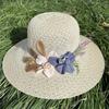 WTEMPO Women's Solid Color Wide Brim Travel Beach Breathable Sun Hats Retro Elegant Spring Summer Foldable Sunscreen Flowers Hats
