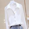 Tato vynikající košile se pyšní krásnou kombinací saténu a šifonu, ideální pro dodání nádechu elegance do jakéhokoli šatníku.. Design se vyznačuje luxusními kovovými knoflíky, které podtrhují jeho sofistikovaný vzhled.. Košile s dlouhými volnými rukávy nabízí pohodlný střih a zároveň si zachovává elegantní štíhlou siluetu.. Vyrobeno z vysoce kvalitního nylonového materiálu, zajišťuje měkký pocit na pokožce, což z něj činí všestrannou a stylovou volbu pro neformální i formální příležitosti.