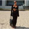 Letní pletené dlouhé šaty s výřezy, bez zad, průsvitné, s dlouhým zvonovým rukávem, sváteční plážové maxi šaty 2025 nové dámské zeštíhlující krytí