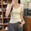 Basic V-neck Solid Thin Summer Pullover Women Female Knitted Ribbed Sweater Slim Short Sleeve Bodycon Sweater