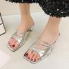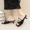 Women's Low Heel Sandals 2024 New Summer Fashion Open Toe Slippers Womens Outdoor Cross Narrow Strap Solid Color Simple Slippers