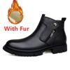 Side Zipper Man Chelsea Boots Genuine Leather Mens Ankle Boots High Quality Warm Plush Fur Winter Boots Luxury Brand Walk Shoes