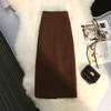 Vlněná sukně střední délky dámská nový zimní styl vysoký pas rozparek rovná sukně na jeden krok sukně zakrývající boky