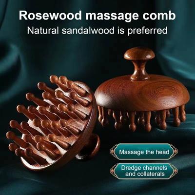 Santalové dřevo Hřeben na vlasy Masáž akupresurních bodů pro relaxaci pokožky hlavy Přenosný hřeben s dřevěnou rukojetí Antistatický stylingový nástroj Guaša deska Péče o zdraví